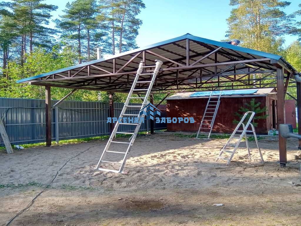 Мы убираем за собой строительный мусор и сдаем навес заказчику. Клиент подписывает акт выполненных работ.
